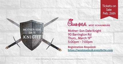 Join us for a special Mother-Son Date Knight at Chick-fil-A West Schaumburg on Thursday, March 19, 2026.